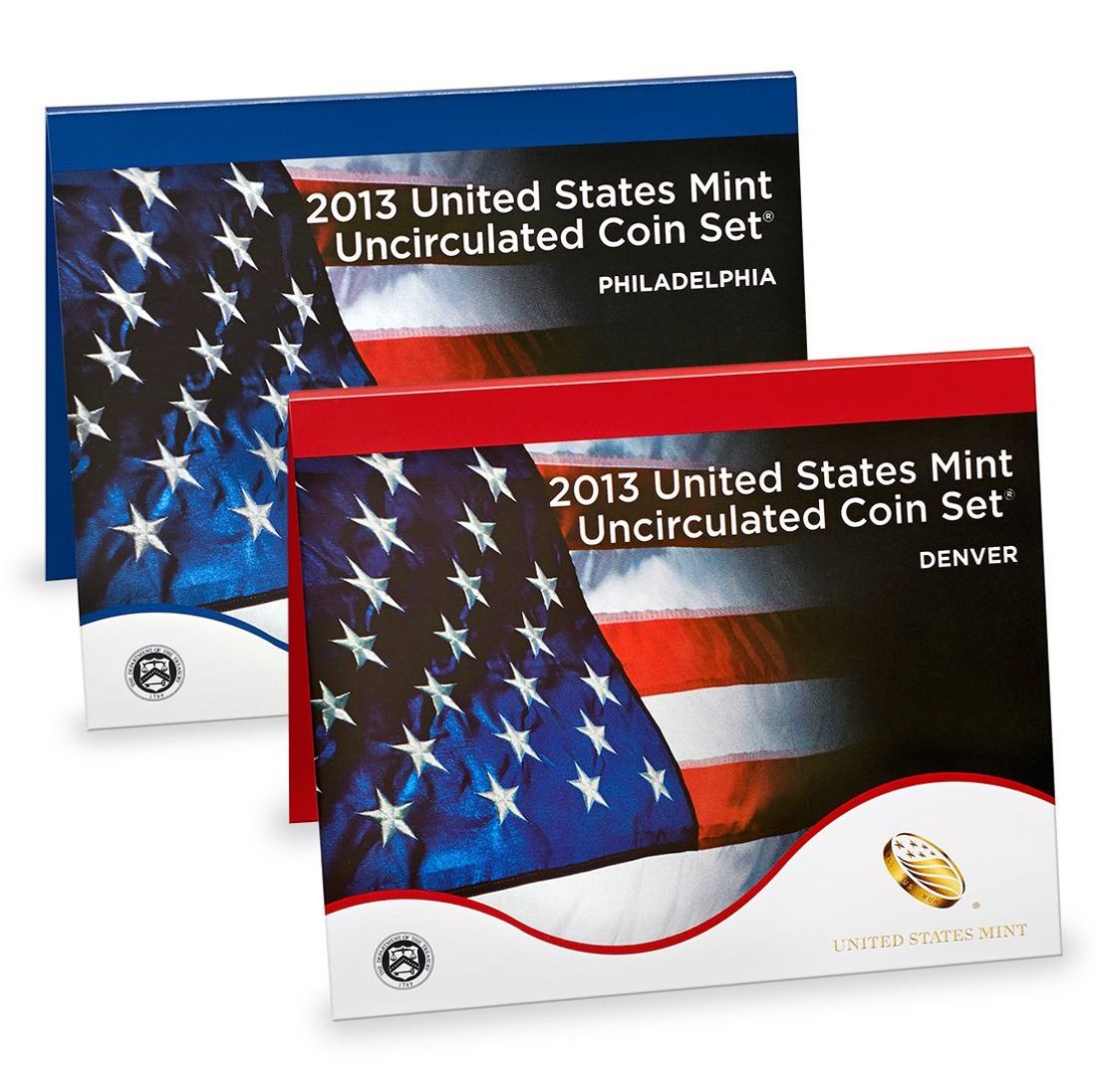 2013 United States Mint Uncirculated 28-Coin Set w/ BURNISHED President Dollars. . The 2013 US Mint Uncirculated Coin Set contains 28 coins (two folders of 14 coins each). One each from the Philadelphia and Denver mints, for a total of 28 coins. Includes the highly sought after BURNISHED President Dollars. There are 2 of each of the following coins in this set, both the P & D Mint: The 5 National Parks Quarters; White Mountains National Park, New Hampshire; Perry's Victory Ohio; Great Basin Alaska; Fort McHenry, Maryland; and Mount Rushmroe in South Dakota; Four Presidential Dollars including: Willam McKinley, Woodrow Wilson; Theodore Roosevlet and William Howard Taft, ; Lincoln Cent, Jefferson nickel, Roosevelt dime, Kennedy half dollar (only in this set), and Native American dollar coins. A very difficult and sought after set. This set is sealed as it left the mint, never opened.
