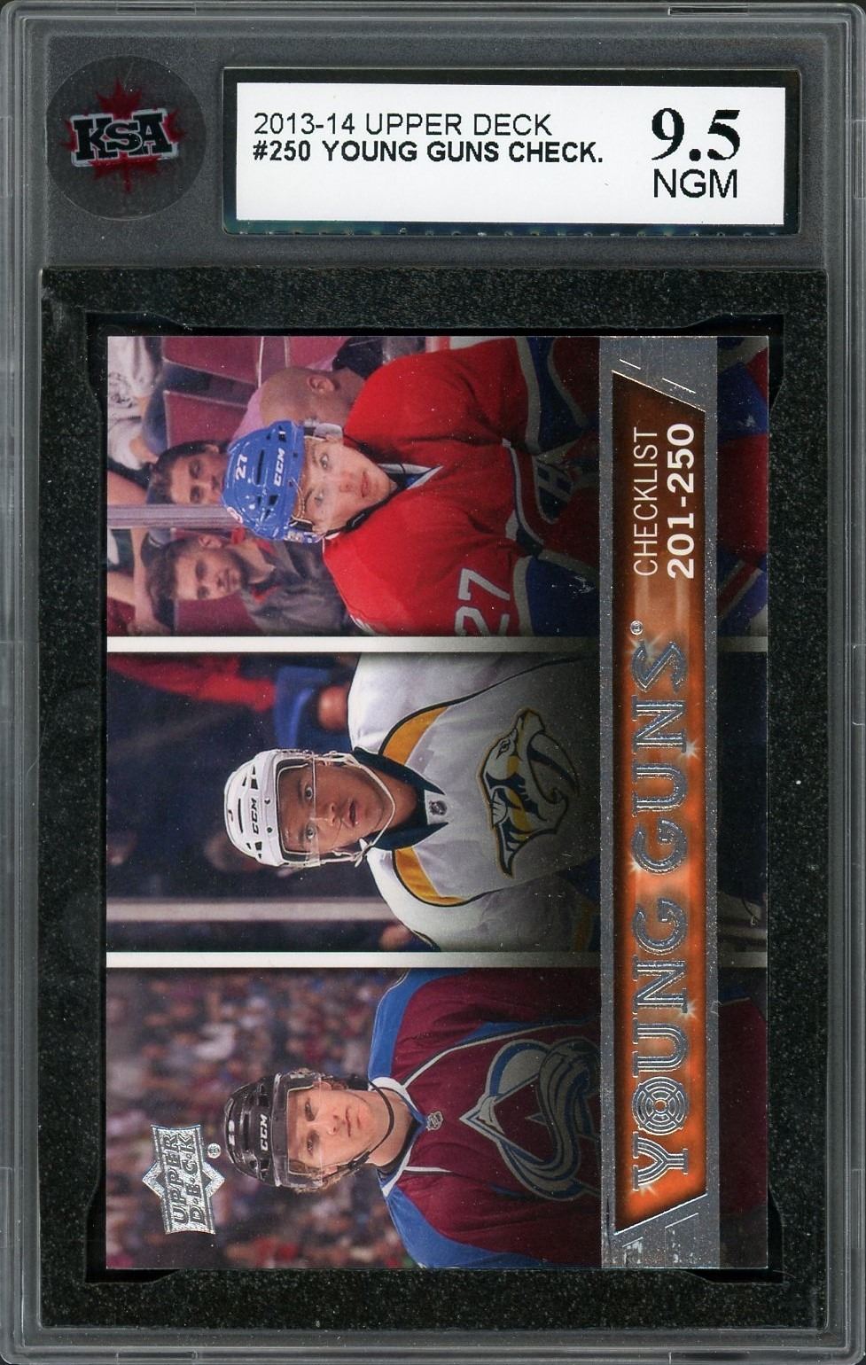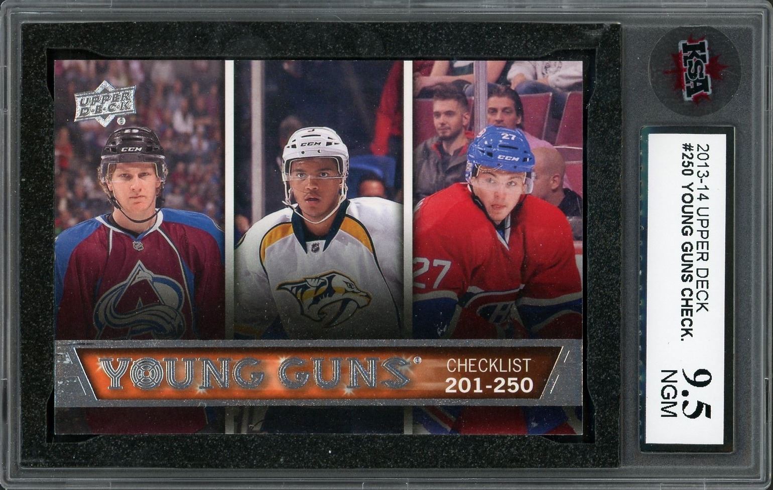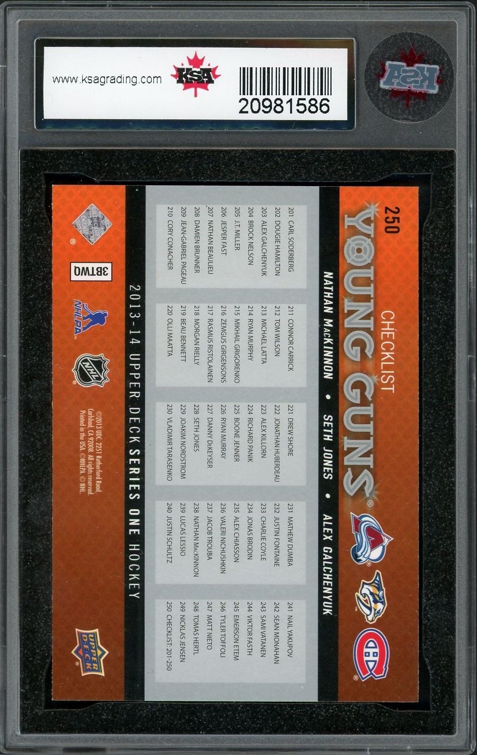 Rare graded young guns (rookie) checklist featuring Colorado Avalanche star Nathan MacKinnon graded a NGM 9.5 by KSA
