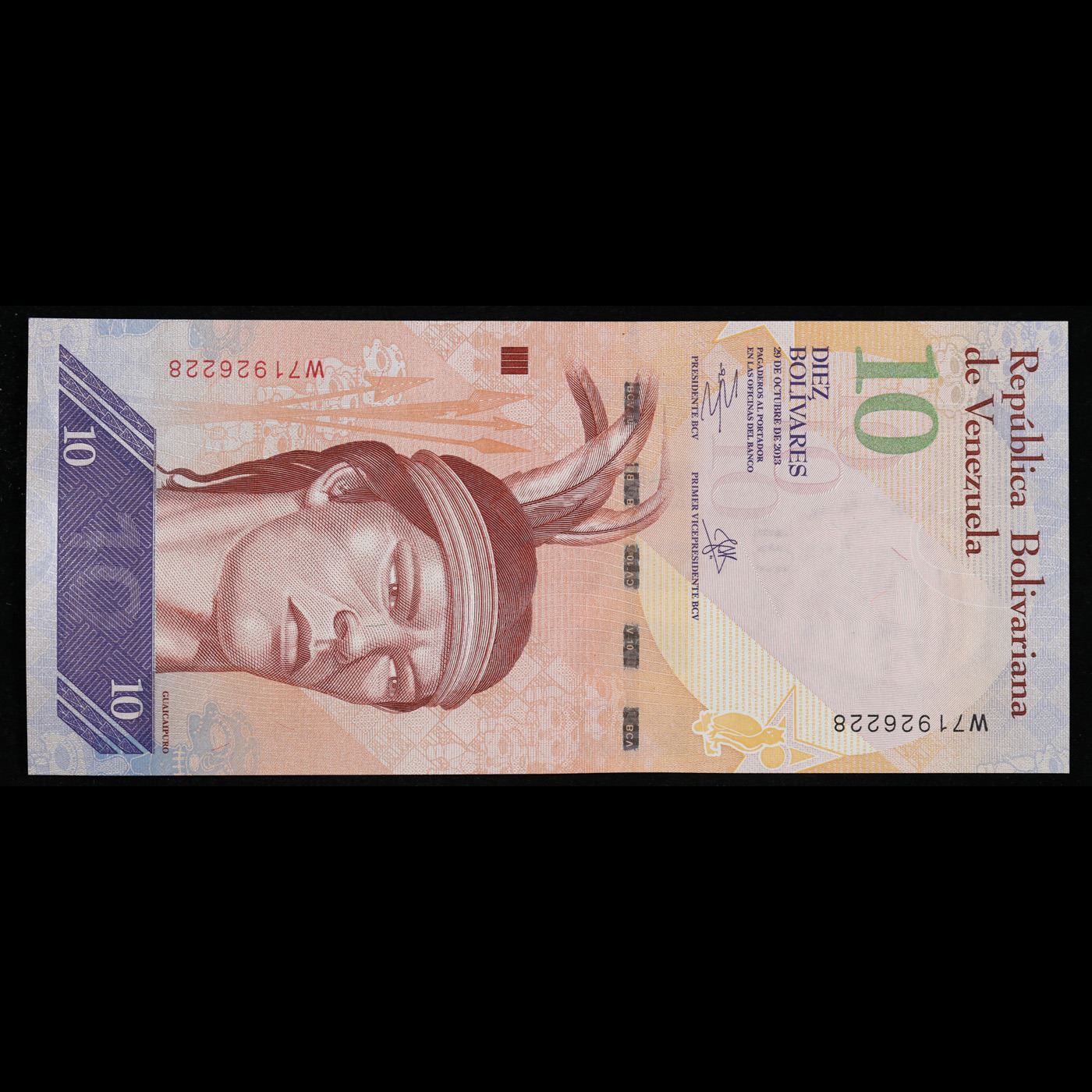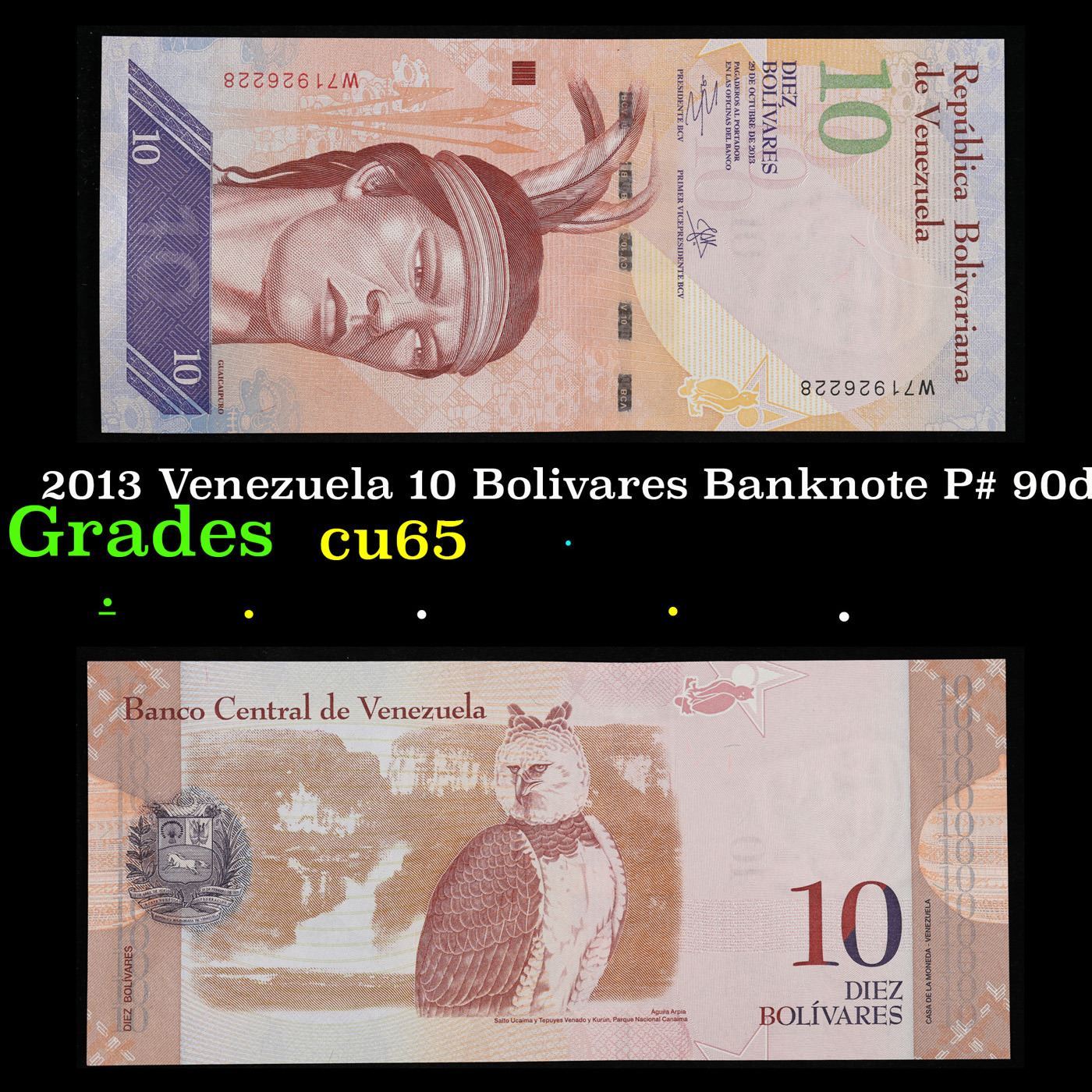 2013 Venezuela 10 Bolivares Banknote P# 90d Grades Gem CU.