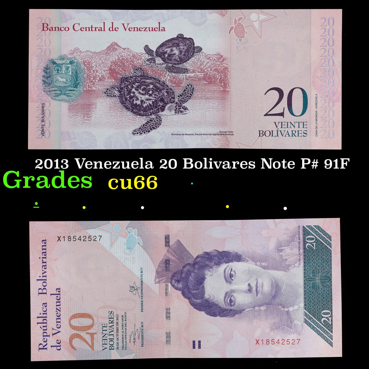 2013 Venezuela 20 Bolivares Note P# 91F Grades Gem+ CU.