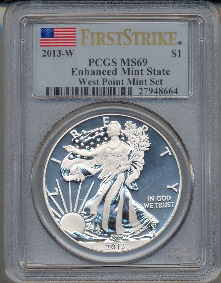 One 2013-W $1 American Silver Eagle Coin PCGS MS69.