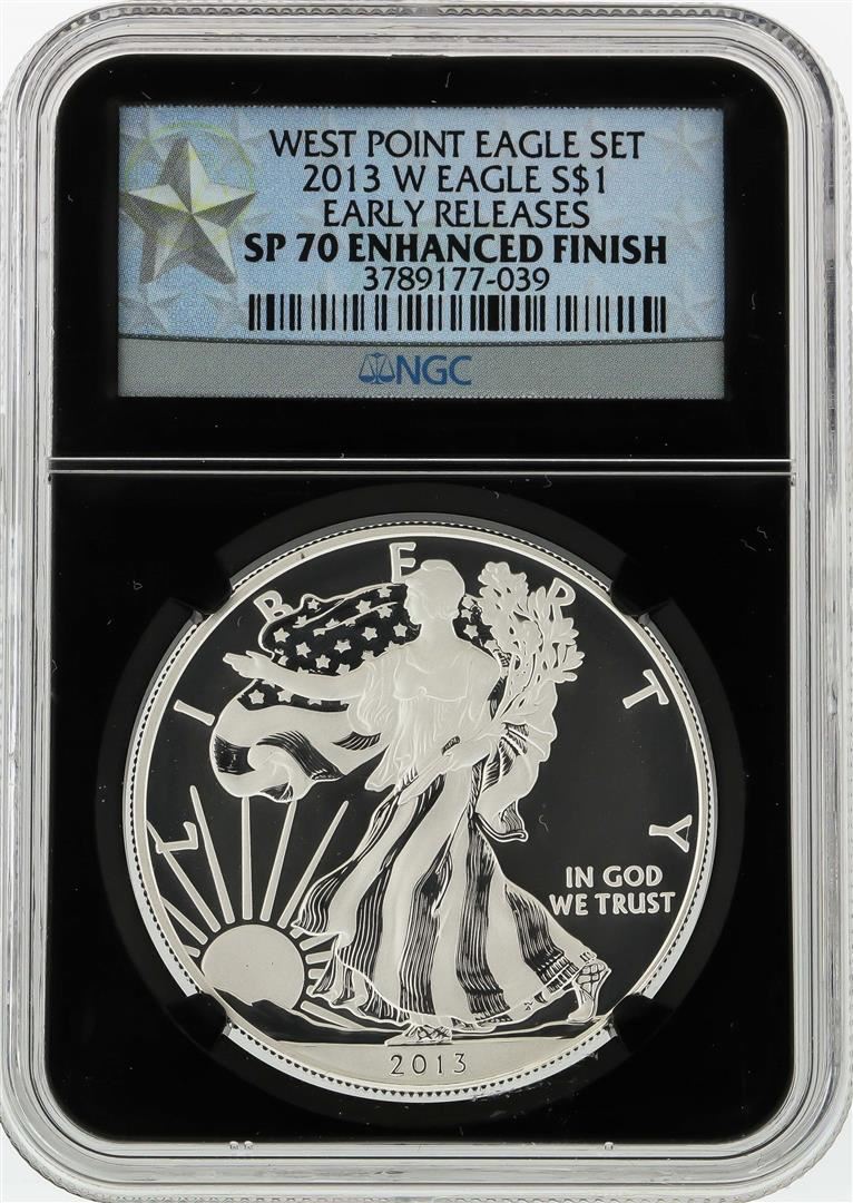 One 2013-W $1 American Silver Eagle Early Release NGC SP70 Enhanced Finish. NGC Certified.