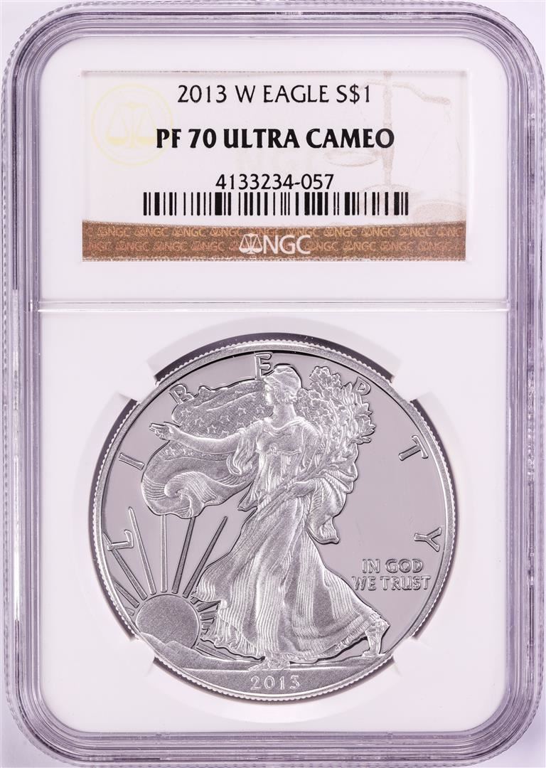 One 2013-W $1 Proof American Silver Eagle Coin NGC PF70 Ultra Cameo. NGC Certified.