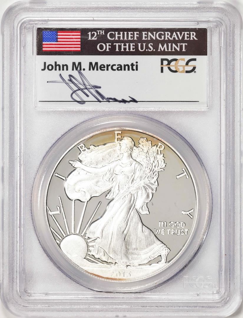 2013-W $1 Proof American Silver Eagle Coin PCGS PR70DCAM First Strike Mercanti Signed