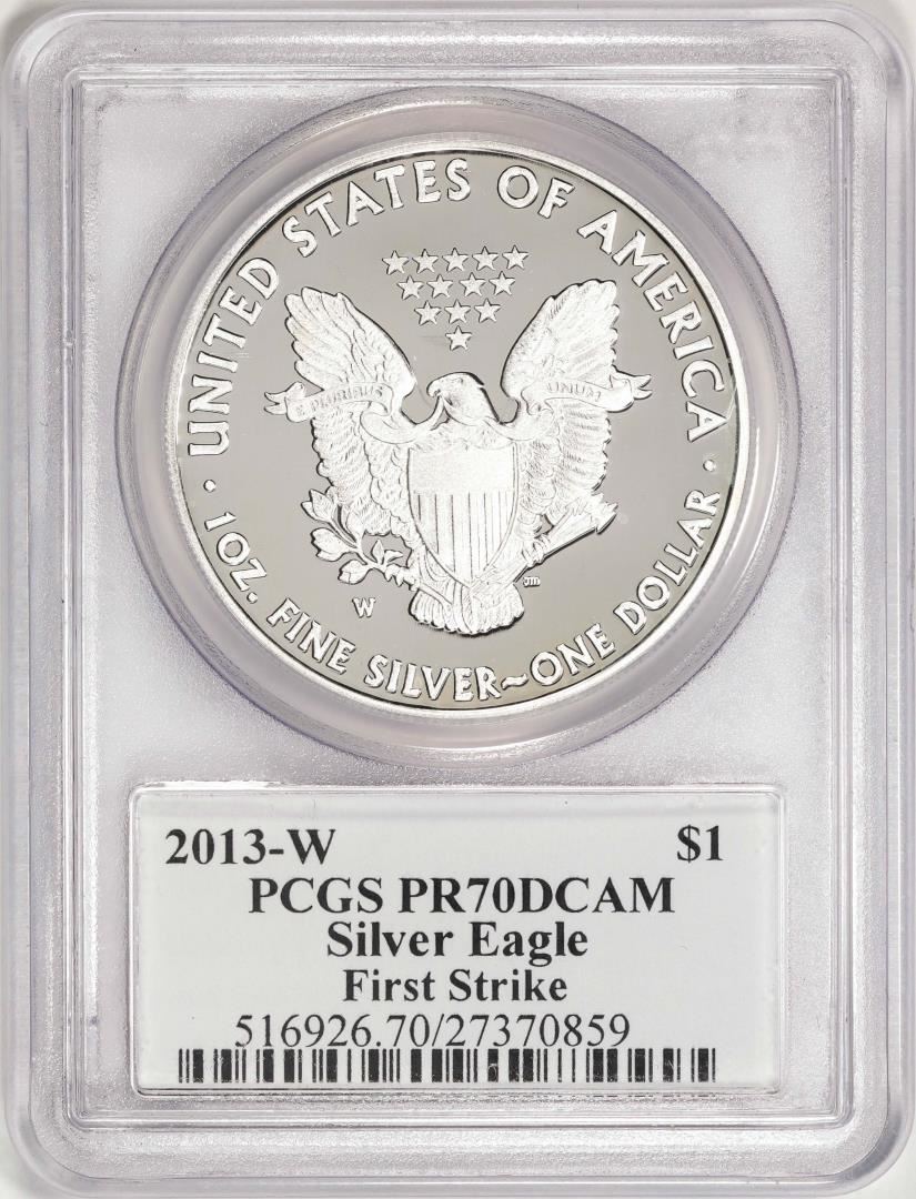 One 2013-W $1 Proof American Silver Eagle Coin PCGS PR70DCAM First Strike Mercanti Signed. PCGS Graded.