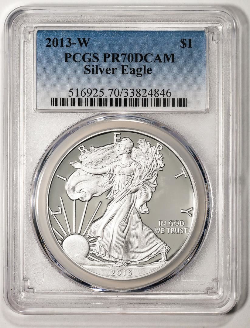 One 2013-W $1 Proof American Silver Eagle Coin PCGS PR70DCAM. PCGS Graded.