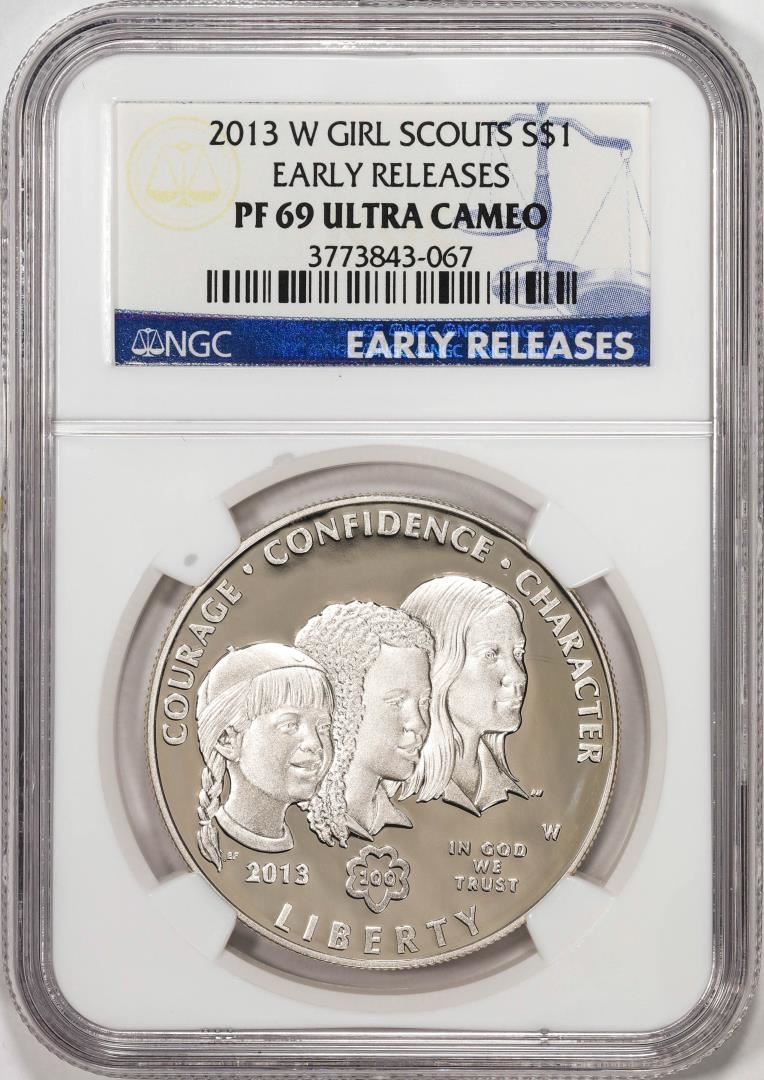 One 2013-W $1 Proof Girl Scouts Silver Dollar Coin NGC PF69 Ultra Cameo Early Releases. NGC Certified.