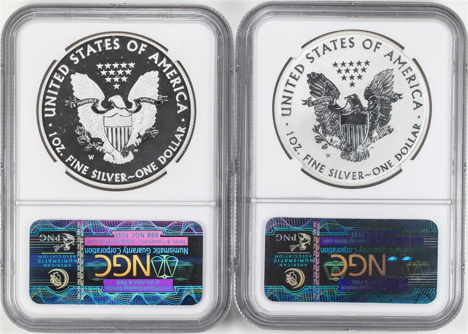 One 2013-W $1 West Point Proof Silver Eagle Coin Set NGC PF70/SP70 First Releases. NGC Certified.