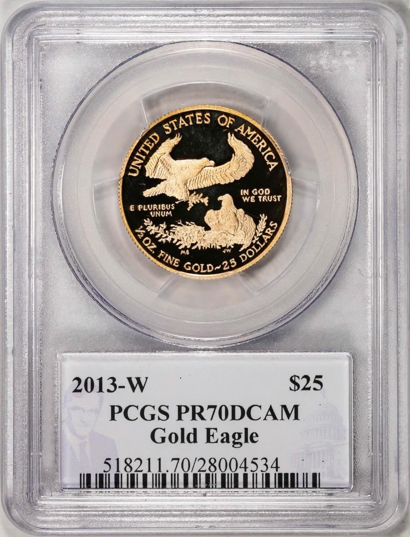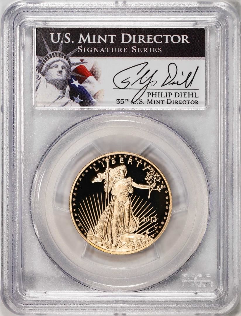 One 2013-W $25 Proof American Gold Eagle Coin PCGS PR70DCAM Philip Diehl Signature. PCGS Graded.