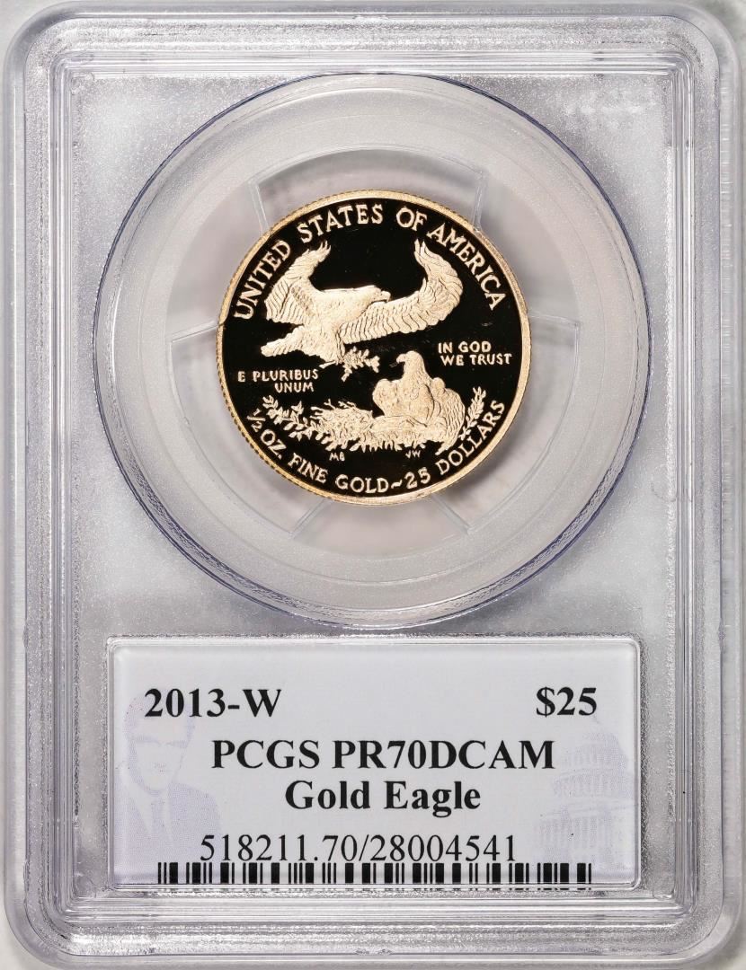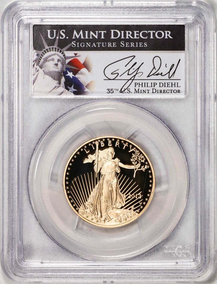 One 2013-W $25 Proof American Gold Eagle Coin PCGS PR70DCAM Philip Diehl Signature. PCGS Graded.
