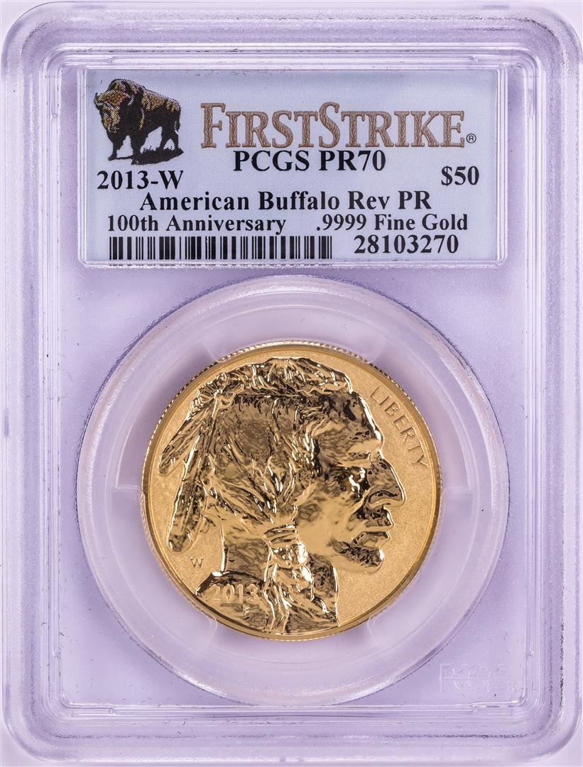 One 2013-W $50 Reverse Proof American Buffalo Gold Coin PCGS PR70 First Strike. PCGS Graded.