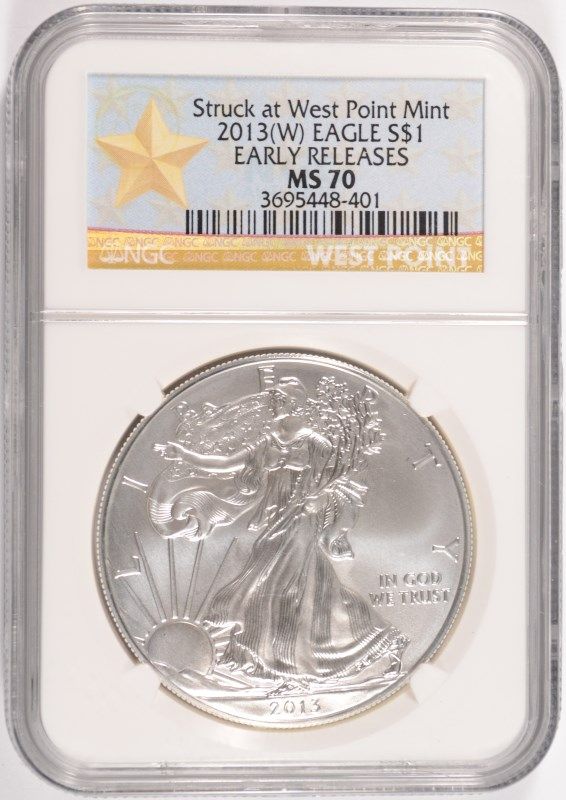 2013 ( W ) AMERICAN SILVER EAGLE, NGC MS-70 GOLD STAR LABEL!