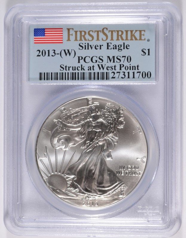 2013-W AMERICAN SILVER EAGLE PCGS MS70, FIRST STRIKE