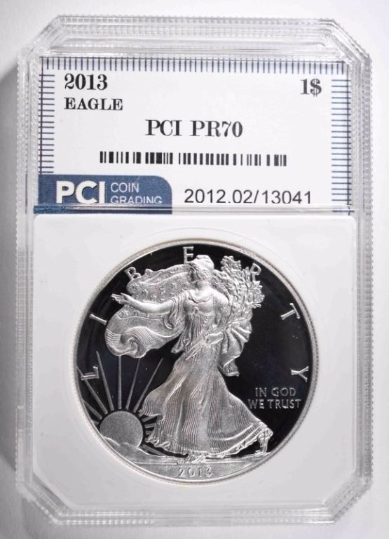 2013-W AMERICAN SILVER EAGLE, PCI PERFECT GEM PROOF ESTIMATE $75 - $85.