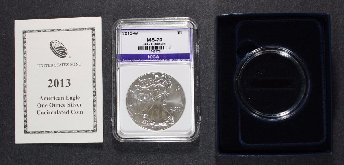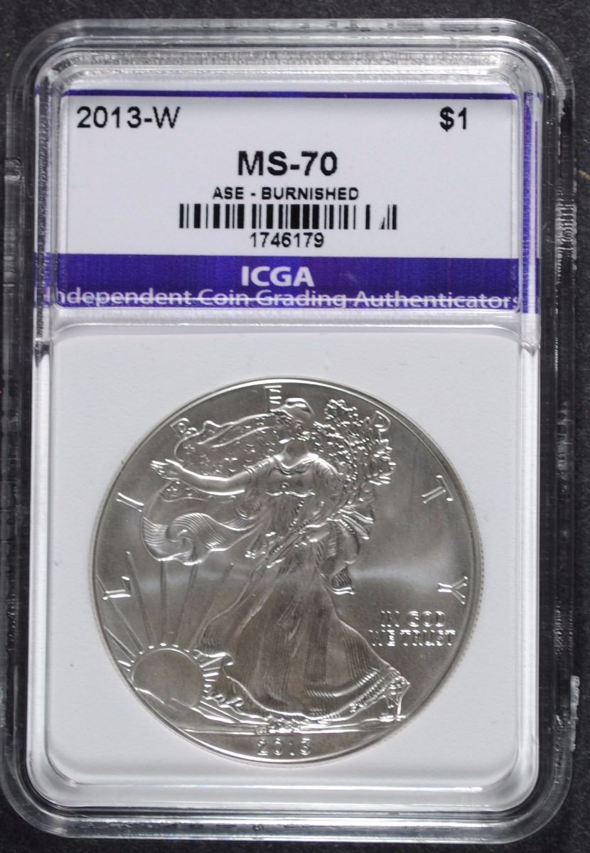 2013-W BURNISHED AMERICAN SILVER EAGLE ICGA PERFECT GEM BU, WITH ORIG BOX/COA