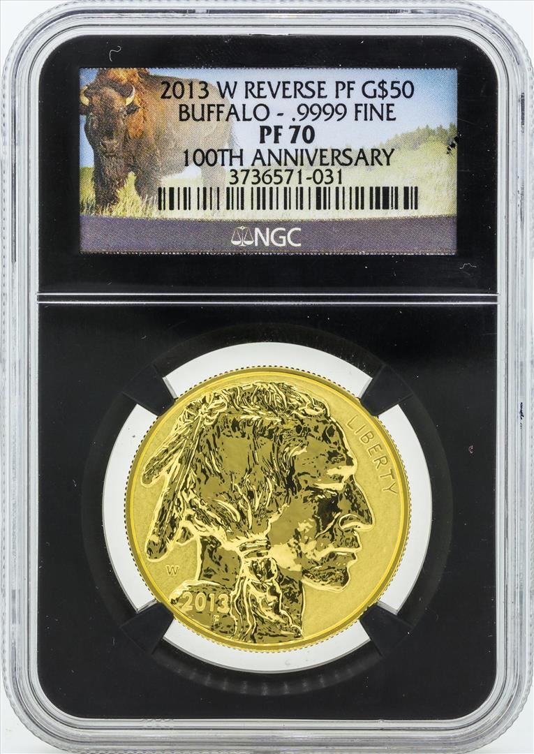 One 2013-W Reverse Proof $50 American Gold Buffalo PF70 100th Anniversary. NGC Certified.