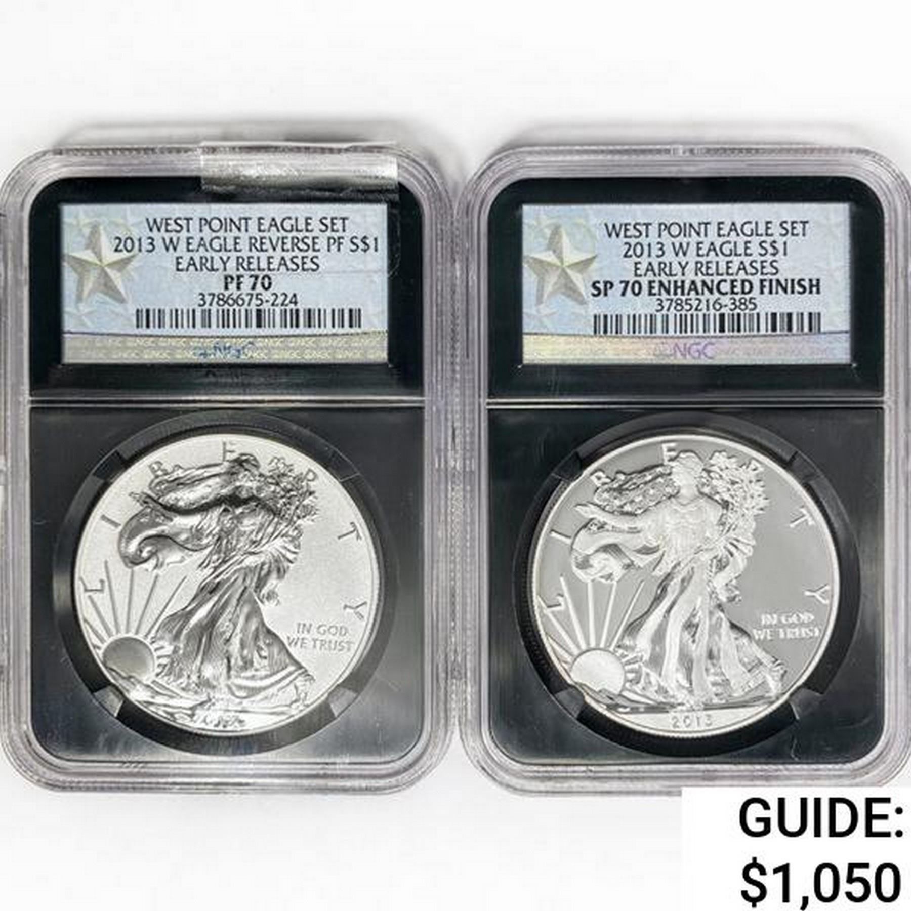 2013-W Set [2] Silver Eagle NGC PF/SP70 One Rev PF