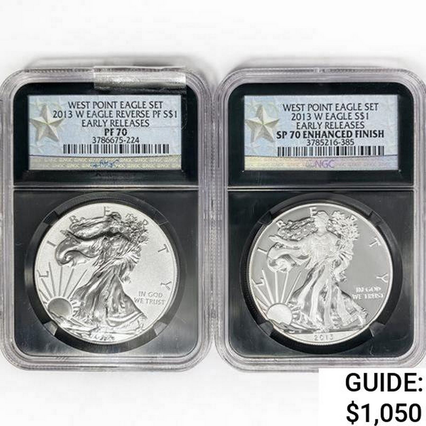 2013-W Set [2] Silver Eagle NGC PF/SP70 One Rev PF