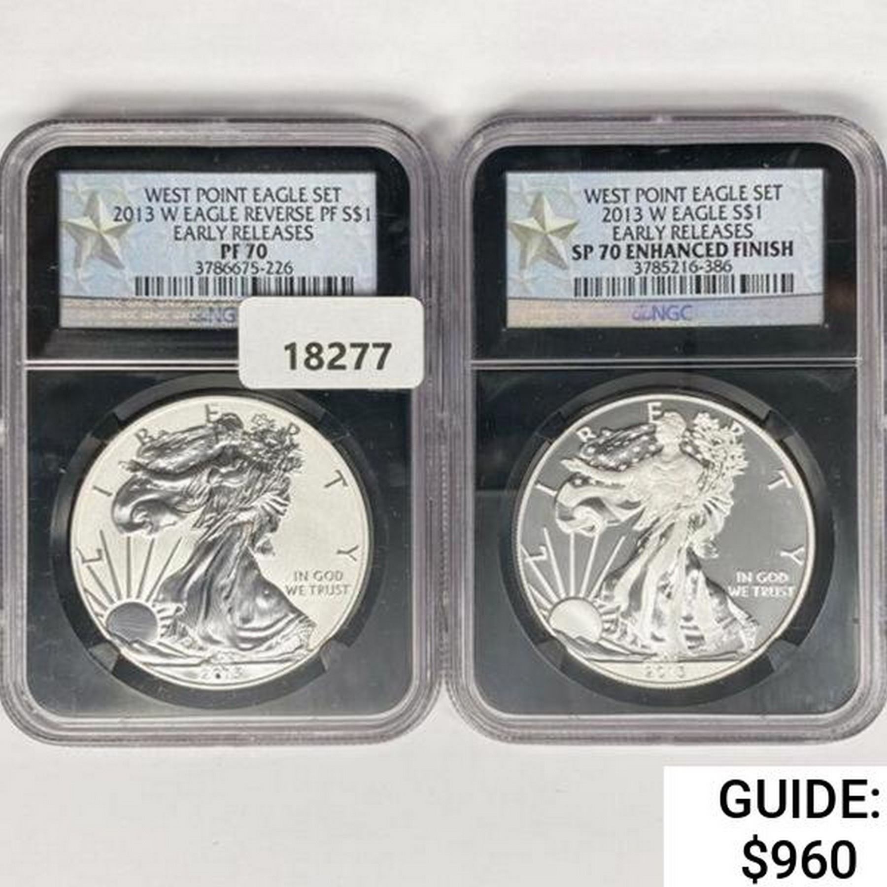 2013-W Set [2] Silver Eagle NGC SP70, PF70 One Rev
