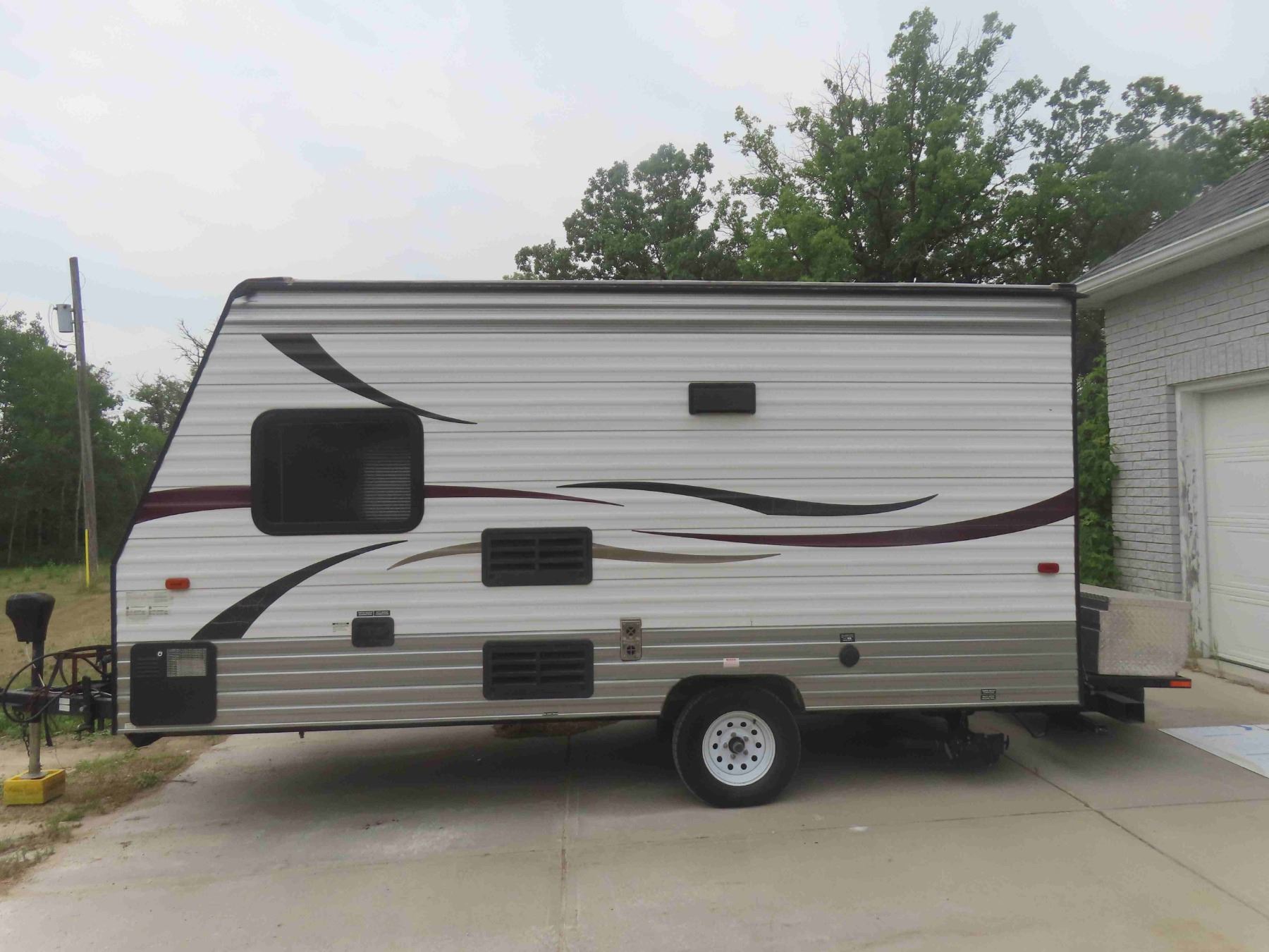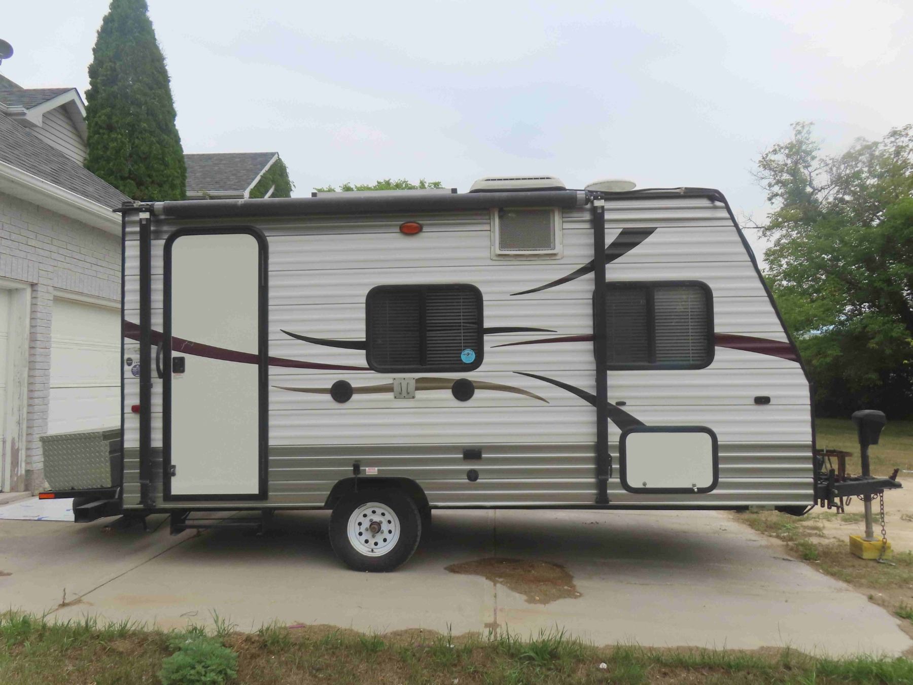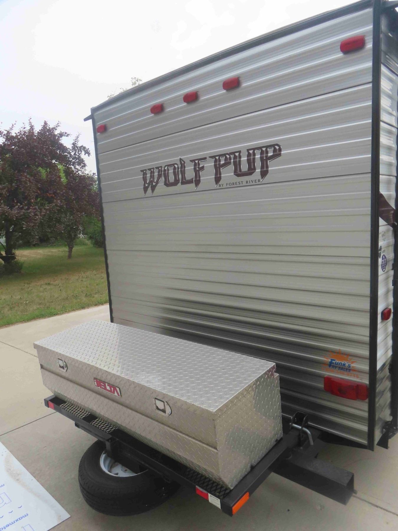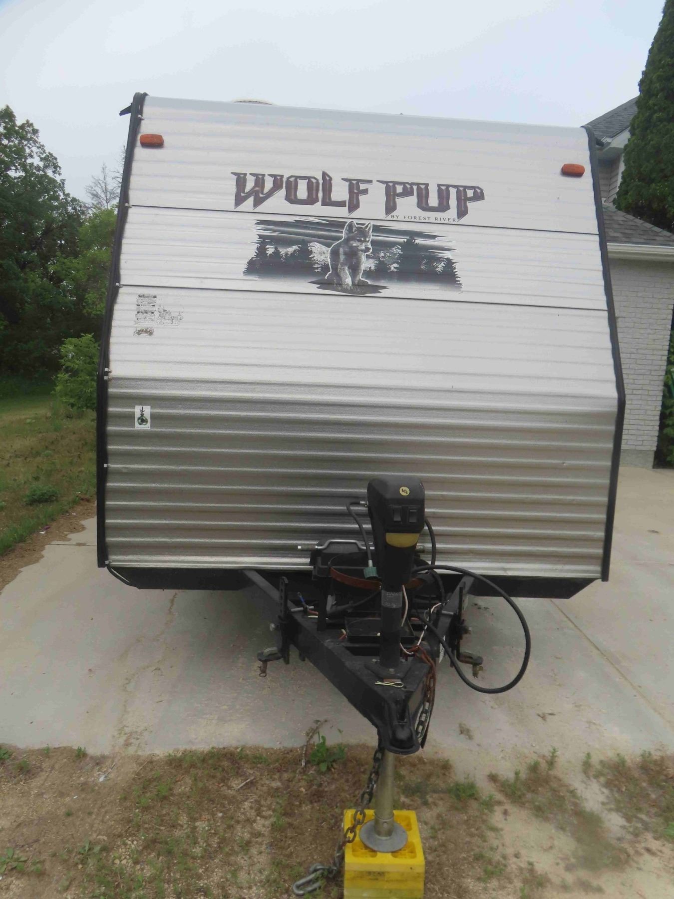 2013 Wolf Pup by Forest River 16ft Camper Bumper Hitch Trailer. Has Fridge, Stove Top, Furnace, Air Conditioning, Solar Charging Panel, Full Bathroom, Can Sleep 3-4, Cargo Extension with Tool Box, Spare Tire. Used Very Little, Excellent Condition. Has TOD.