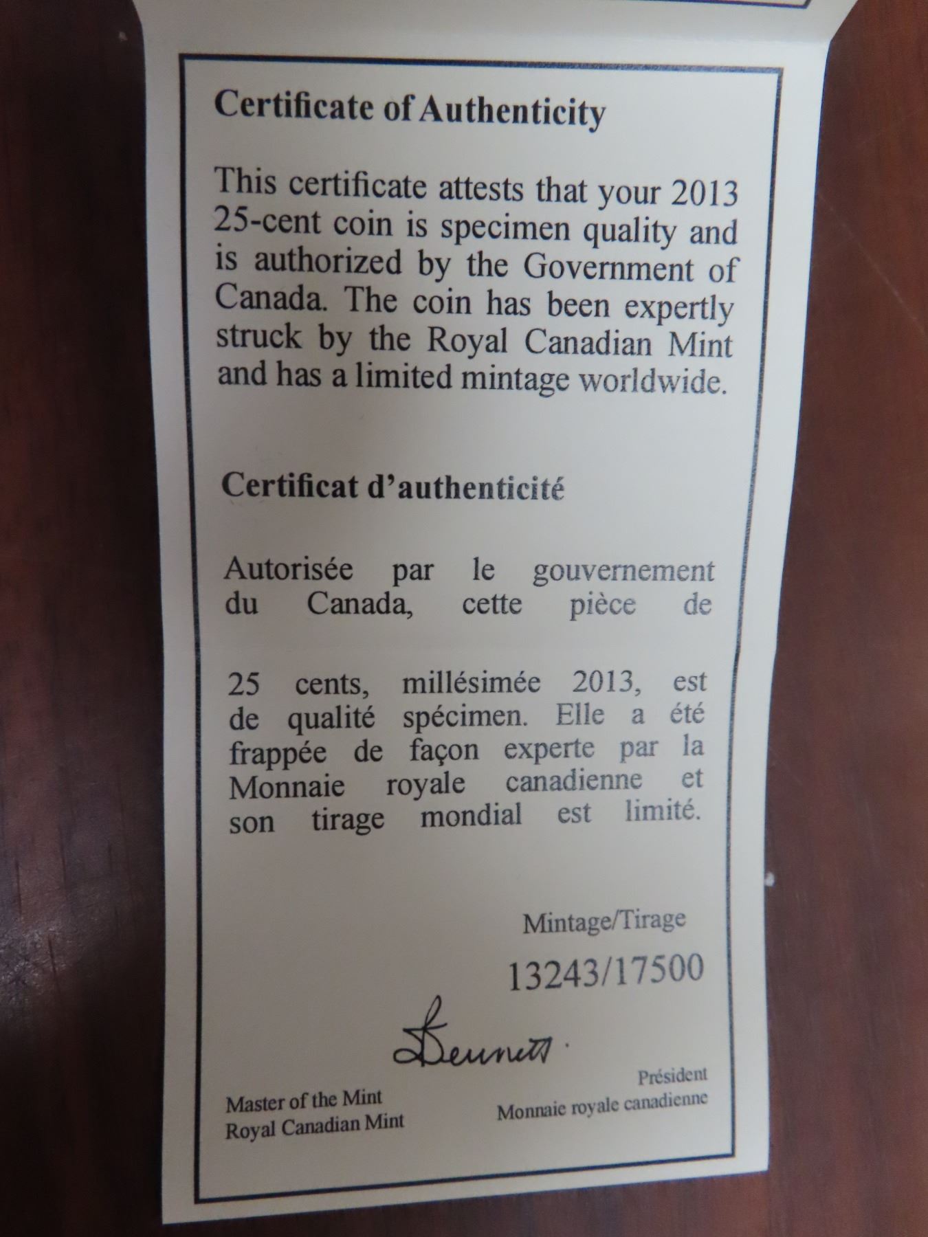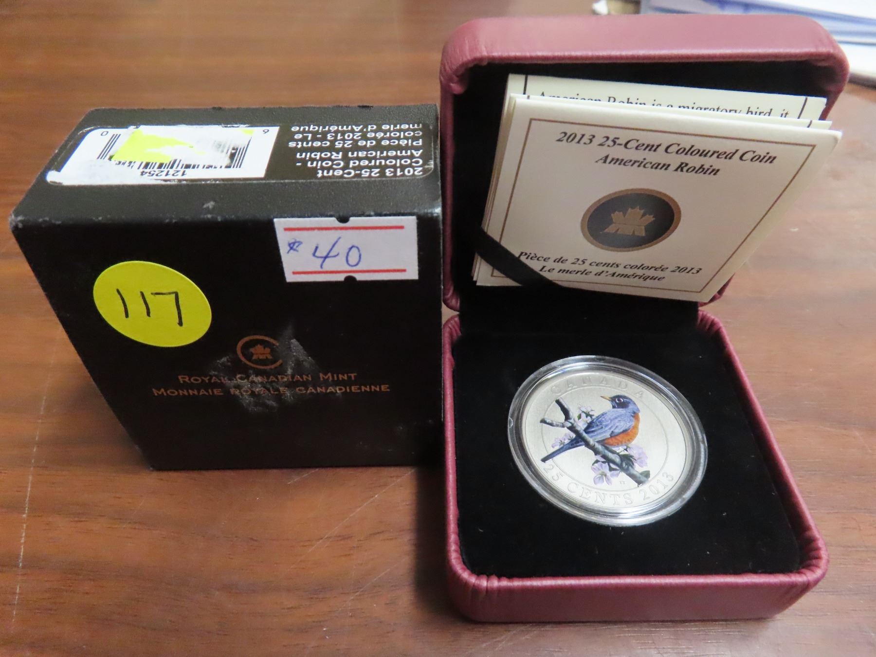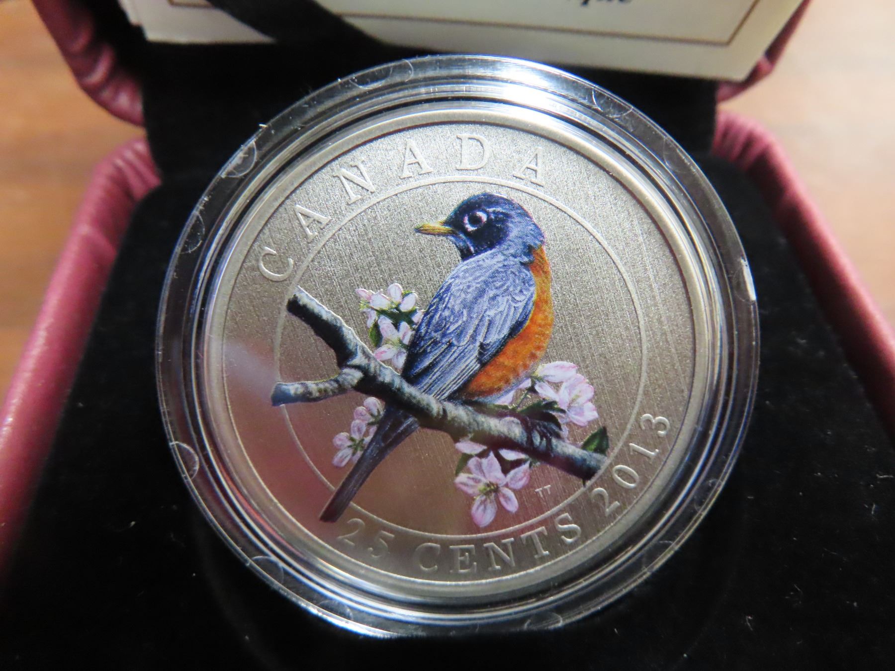 2013 american robin canadian 25 cent coloured coin with certificate of authenticity