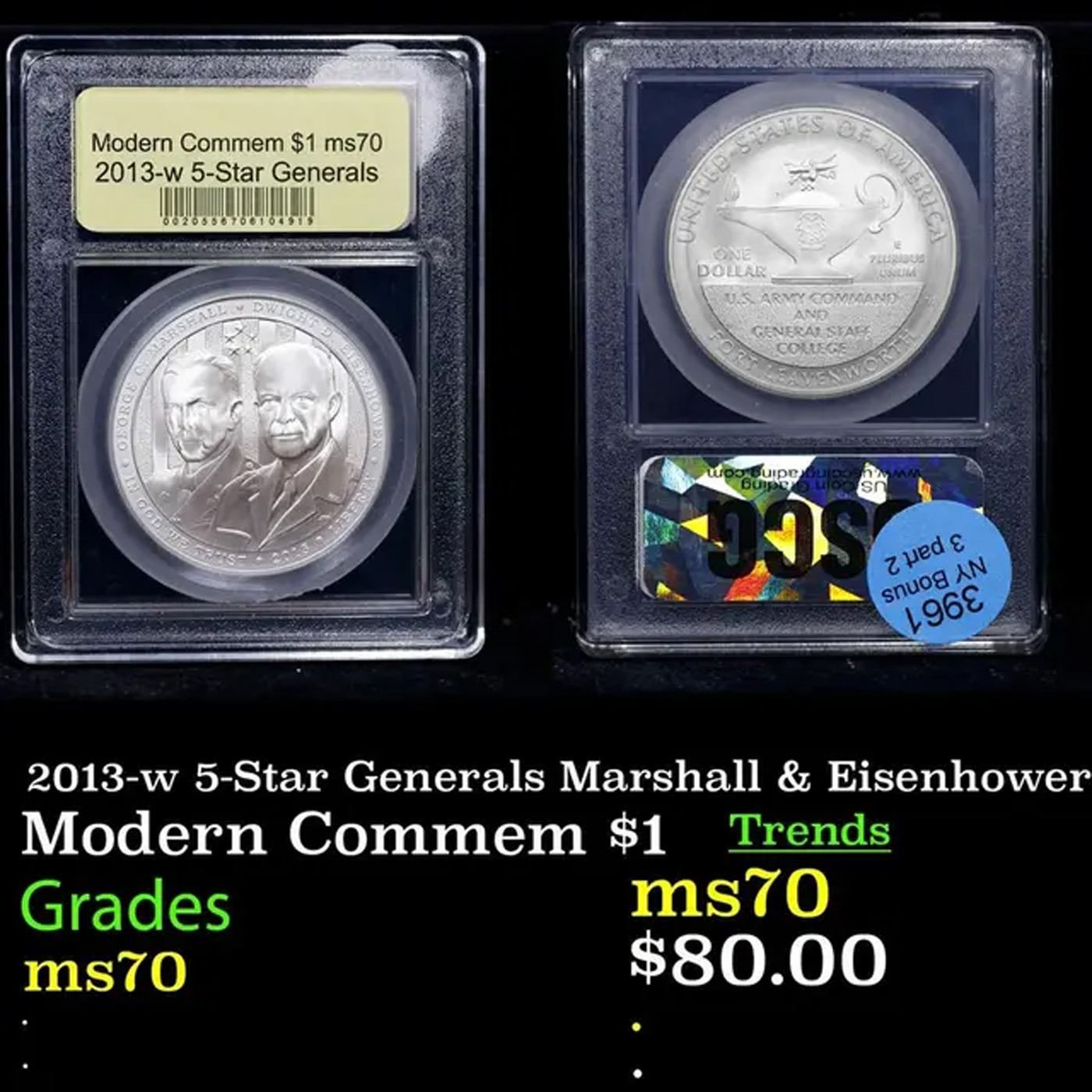 2013-w 5-Star Generals Marshall & Eisenhower Modern Commem Dollar $1 Graded ms70, Perfection By USCG