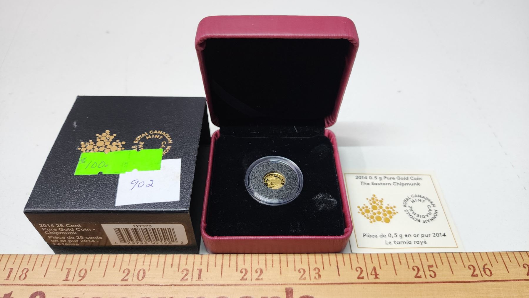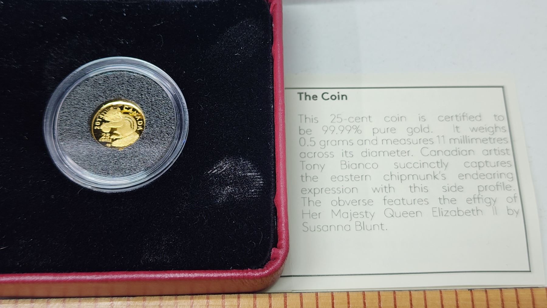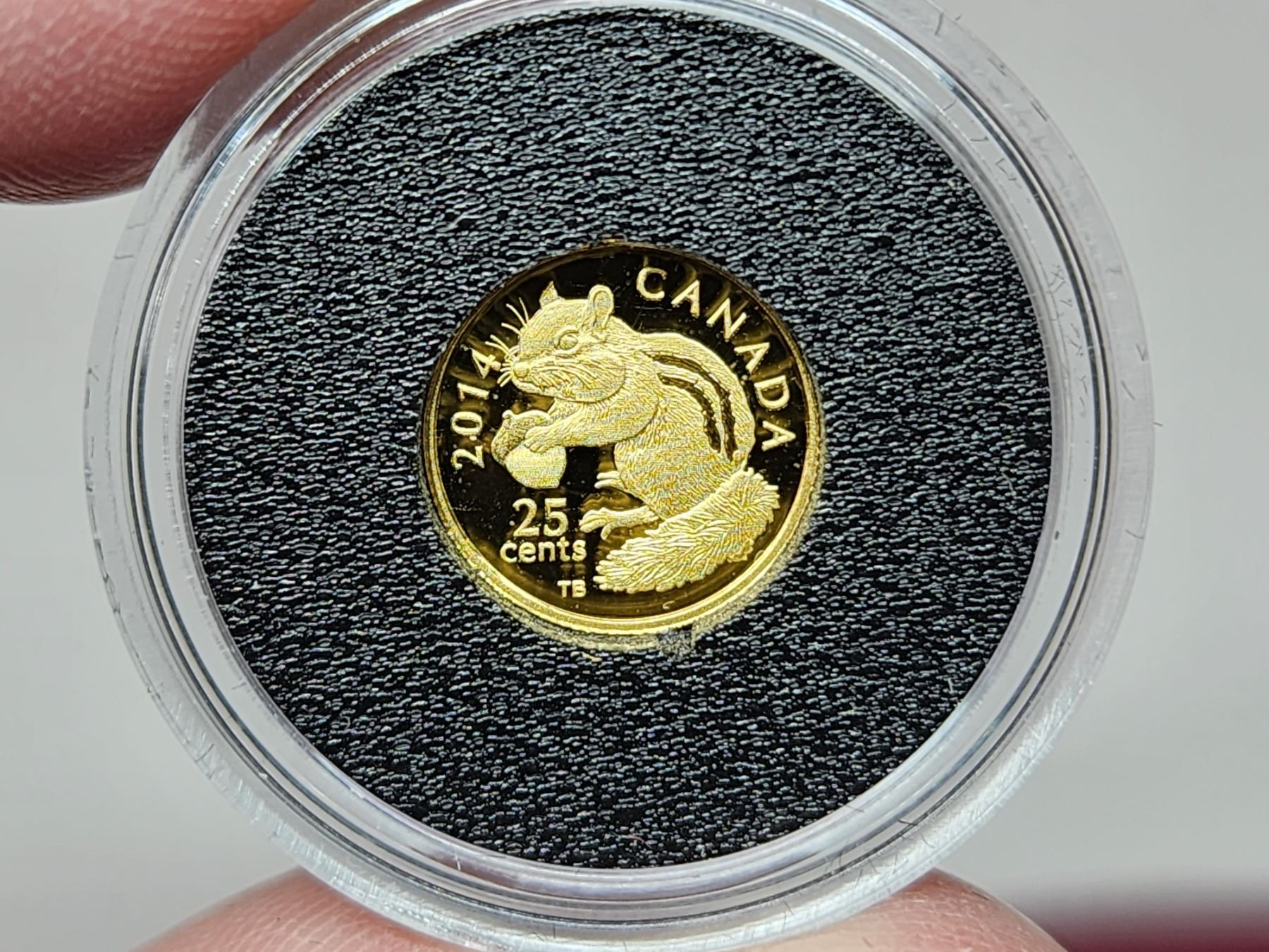 2014 - 0.5g fine gold 99.99%, Canadian 25 cent "Eastern Chipmunk" coin - in case