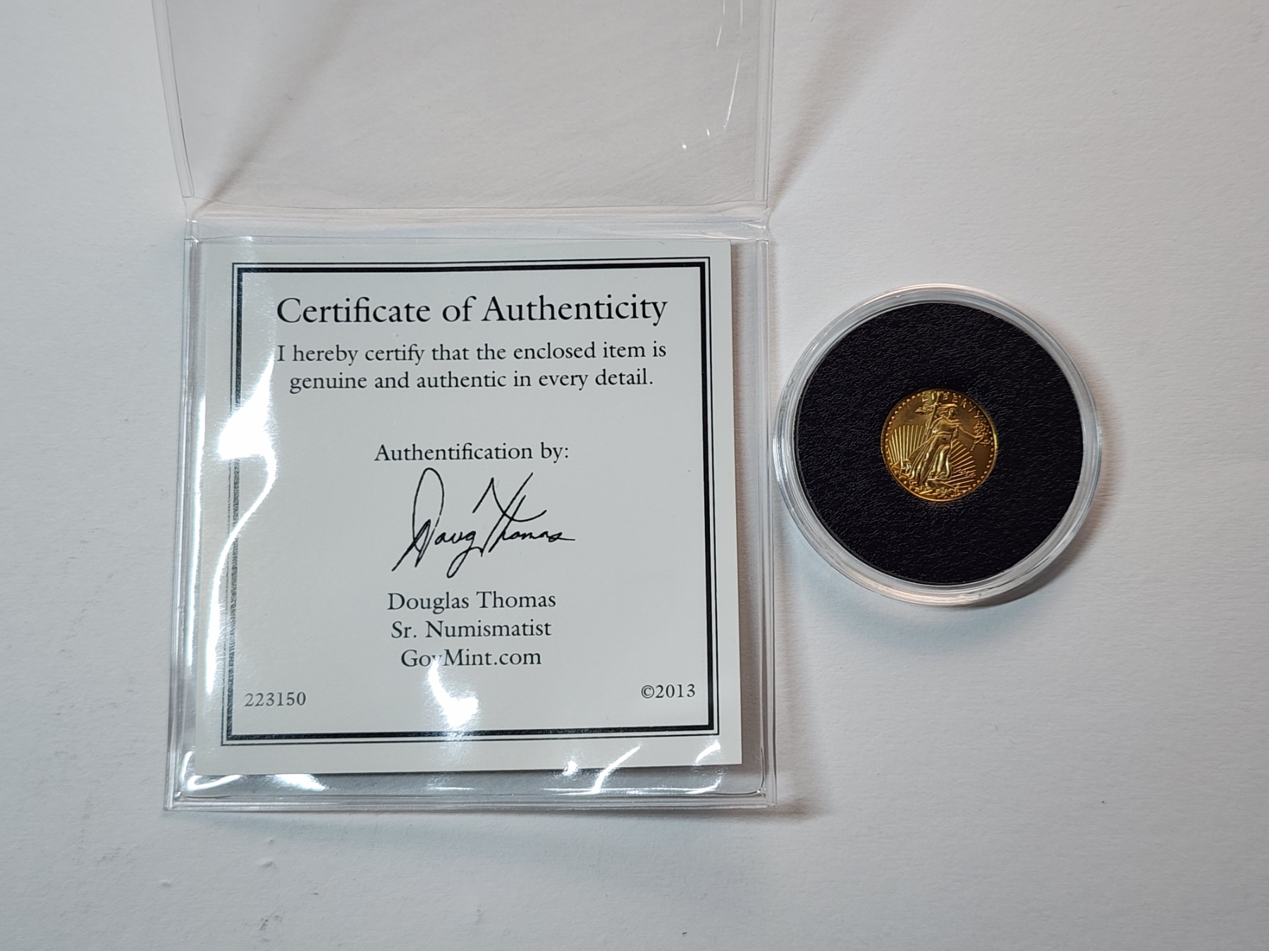 2014 1/10 oz Fine Gold $5 American Eagle Coin in Capsule w/ Certificate of Authenticity