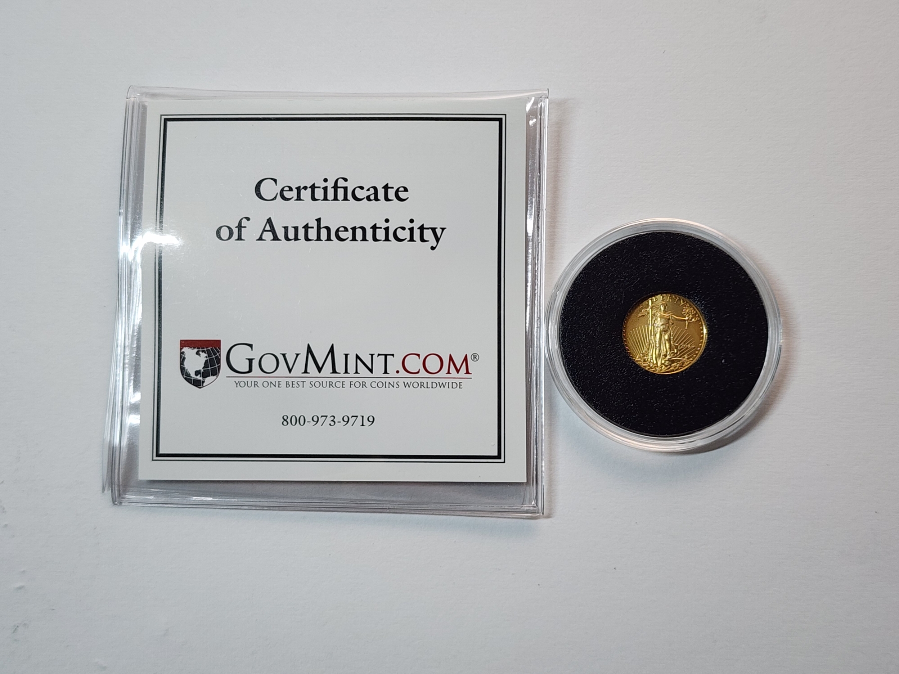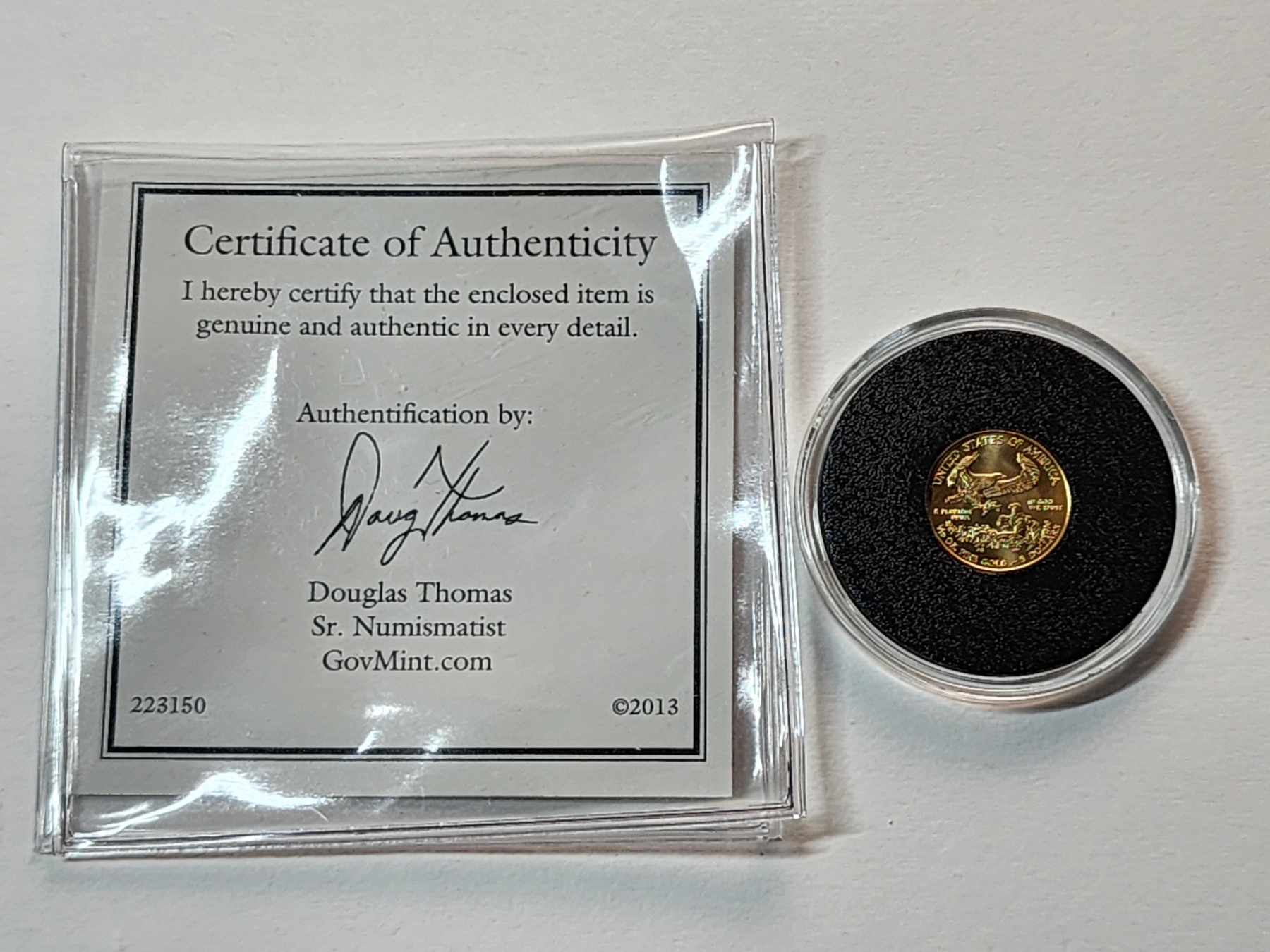 2014 1/10 oz Fine Gold $5 American Eagle Coin in Capsule w/ Certificate of Authenticity