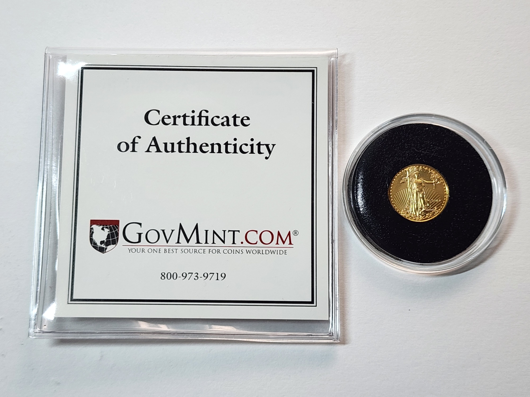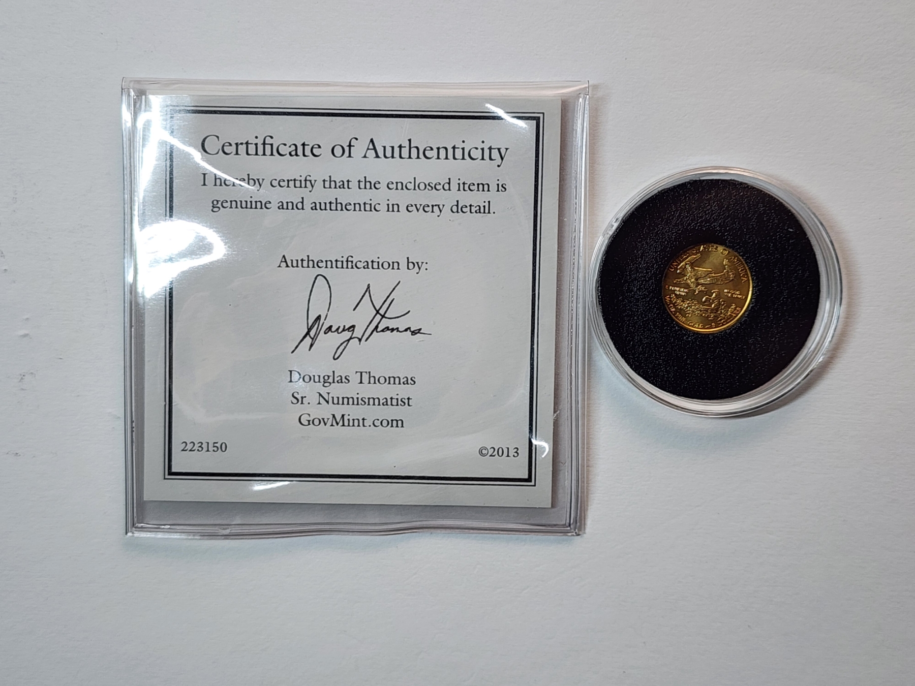 2014 1/10 oz Fine Gold $5 American Eagle Coin in Capsule w/ Certificate of Authenticity