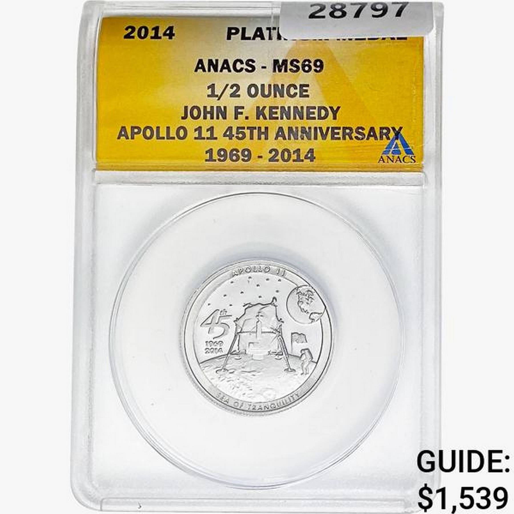 2014 1/2oz. Platinum JFK Apollo 11 Medal ANACS MS69