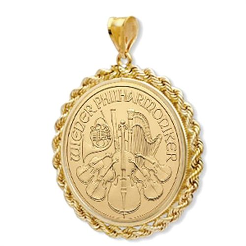 2014 1/4 oz Gold Philharmonic Pendant (Rope-Prong Bezel **|**|** Year: 2014 ; Mint Mark: Brilliant Uncirculated ; Denomination: 25 Euro ; MSRP: $900