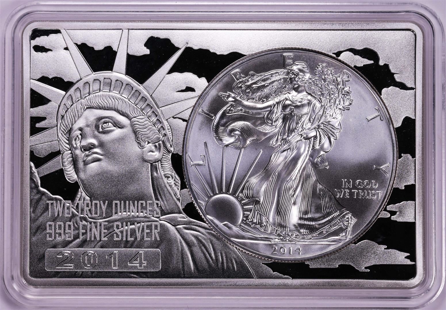 One 2014 $1 American Silver Eagle Coin & 2oz Silver Bar Set.