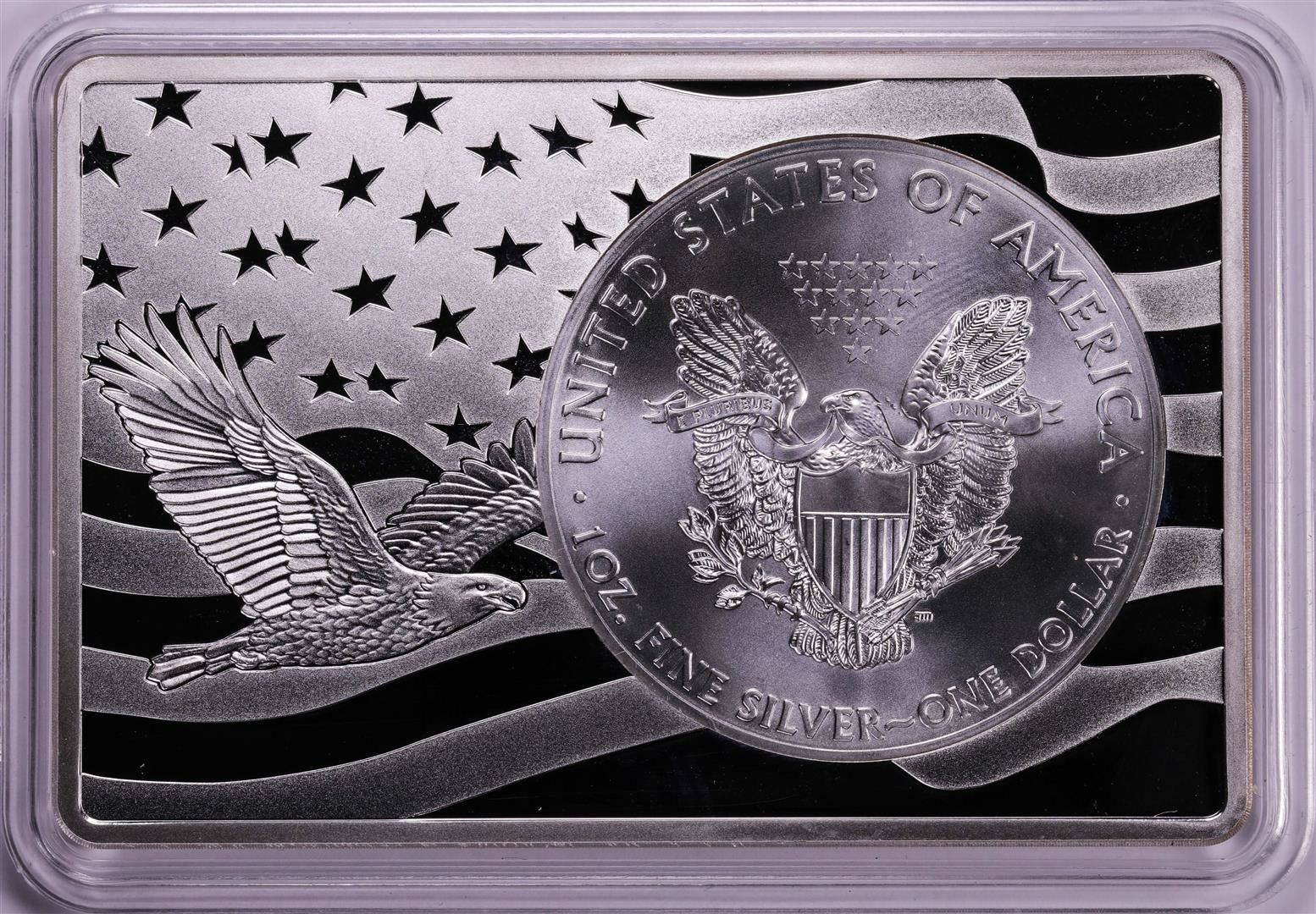 One 2014 $1 American Silver Eagle Coin & 2oz Silver Bar Set.