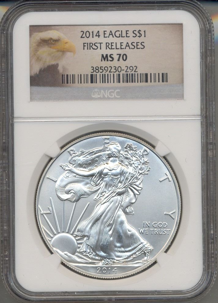 One 2014 $1 American Silver Eagle Coin NGC MS70.
