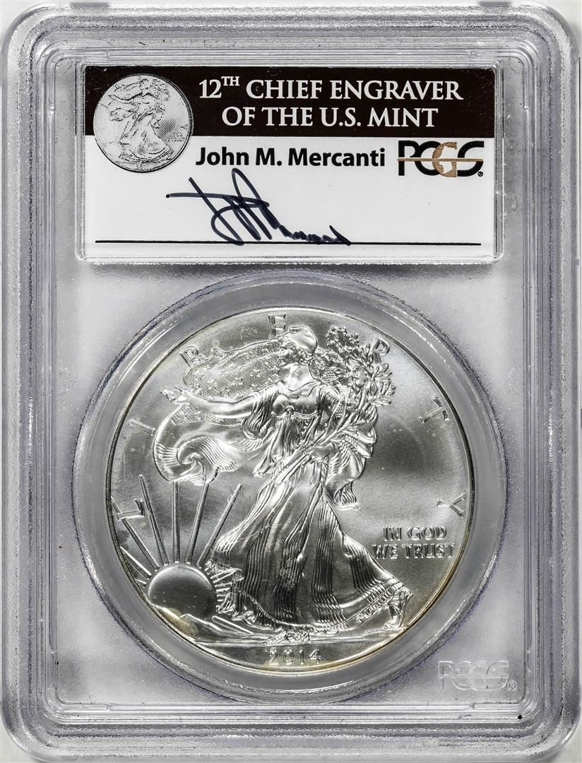 2014 $1 American Silver Eagle Coin PCGS MS69 First Strike Mercanti Signature