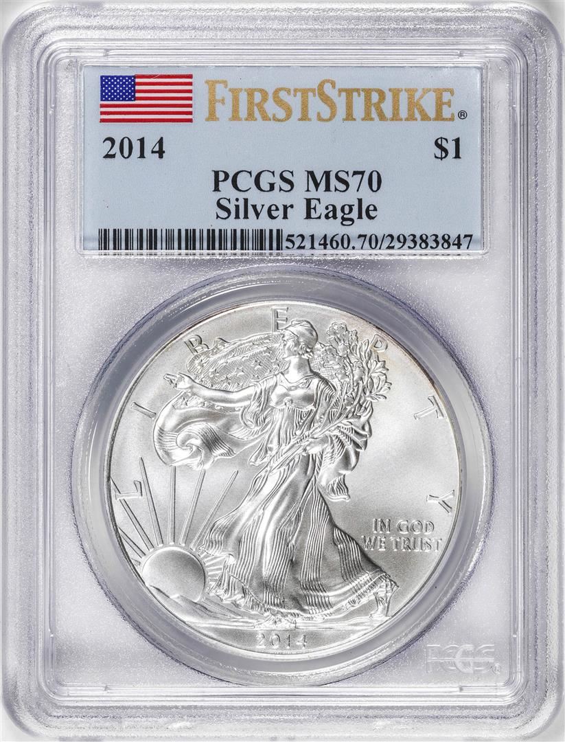 One 2014 $1 American Silver Eagle Coin PCGS MS70 First Strike. PCGS Graded.