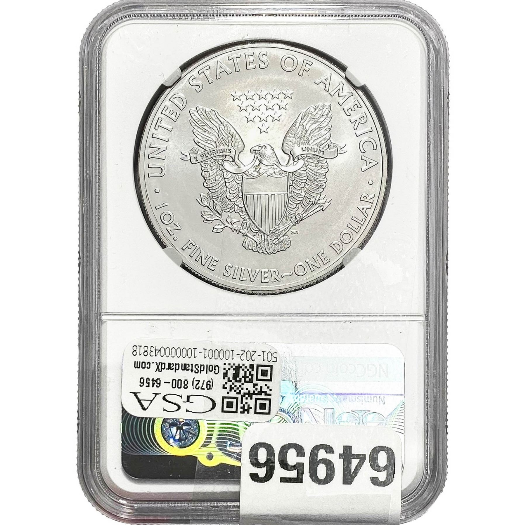 e. Coins sold referencing a third-party grading service are sold “AS IS” without any express or implied warranty, except for a guarantee by GSA that they are genuine. Removal or alteration of the holder, voids all of Bidder’s claims concerning that Product. Certain warranties may be available from the grading services and Bidders are referred to them for further details: Numismatic Guaranty Corporation (NGC), PO Box 4776, Sarasota, FL 34230, www.ngccoin.com/services/writtenguarantee.asp; Professional Coin Grading Services (PCGS), PO Box 9458, Newport Beach, CA 92658, www.pcgs.com/guarantee.html; ANACS, 6555 S. Kenton St., Ste. 303, Englewood, CO 80111; and Independent Coin Grading Co. (ICG), 7901 East Bellview, Ave., Suite 50, Englewood, CO 80111.