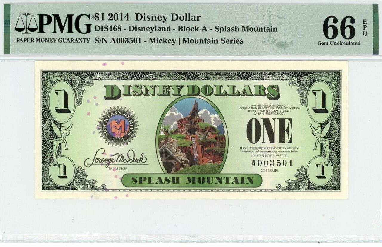 One 2014 $1 Splash Mountain Disney Dollar PMG 66EPQ.