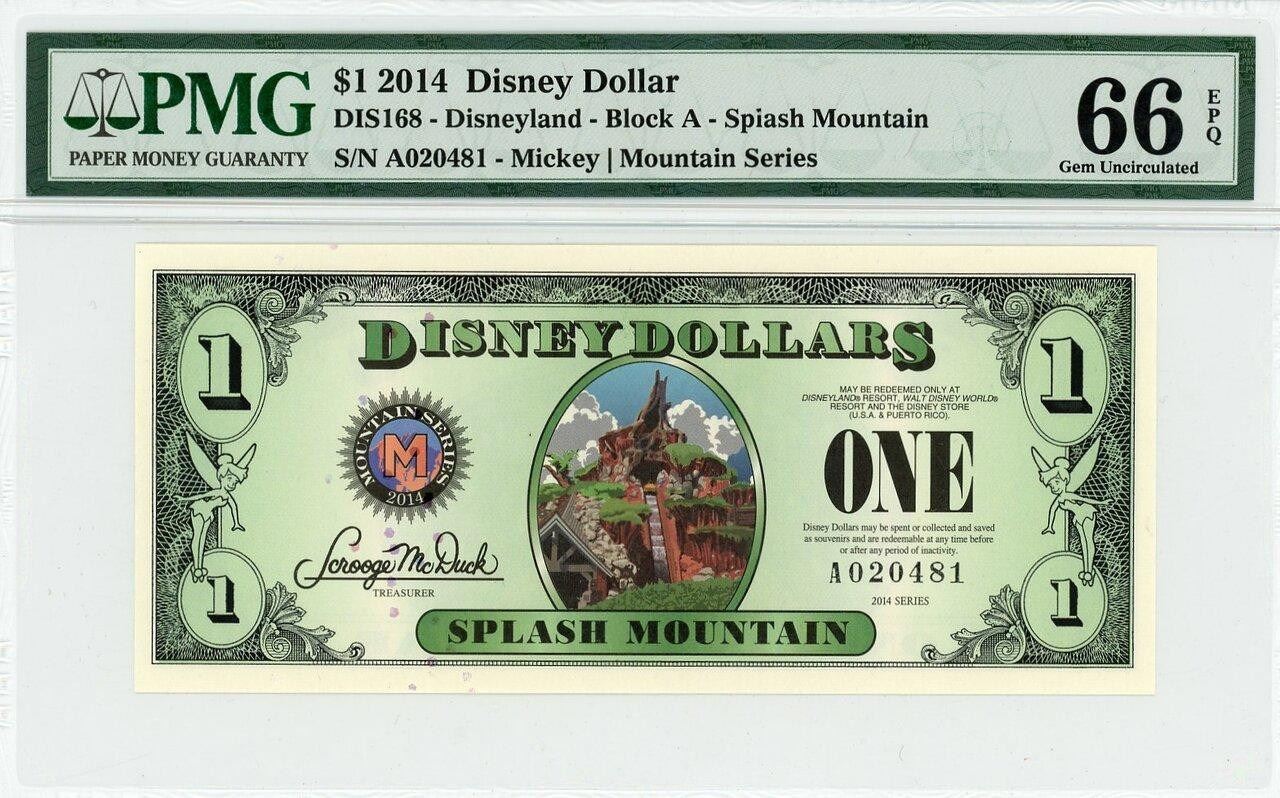 One 2014 $1 Splash Mountain Disney Dollar PMG 66EPQ.
