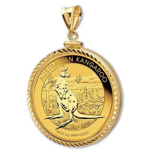 2014 1 oz Gold Kangaroo Pendant (Diamond-ScrewTop Bezel **|**|** Year: 2014 ; Mint Mark: Brilliant Uncirculated ; Denomination: $100 ; MSRP: $2800