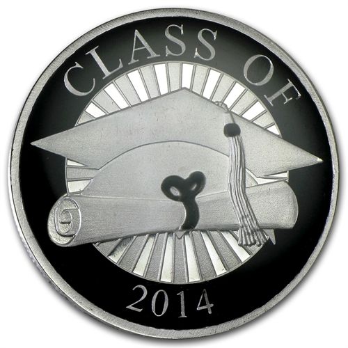 2014 1 oz Graduation Enameled Silver Round (w/Box & **|**|** 2014 1 oz Graduation Enameled Silver Round (w/Box & Capsule) ; MSRP: $200