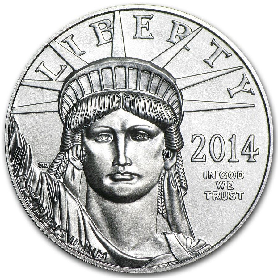 Product ID: 79973 Year: 2014 Grade: Brilliant Uncirculated Grade Service: None Denomination: $100 Mint Mark: None Metal Content: 1 troy oz Purity: .9995 Manufacturer: U.S. Mint Thickness: 2.5 mm Diameter: 32.7 mm Inner Pack: 20