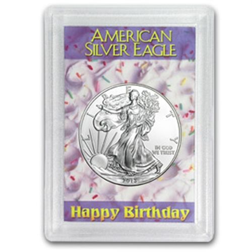 2014 1 oz Silver Eagle in Happy Birthday Design Harris **|**|** Year: 2014 ; Mint Mark: Brilliant Uncirculated ; Denomination: $1 ; MSRP: $100