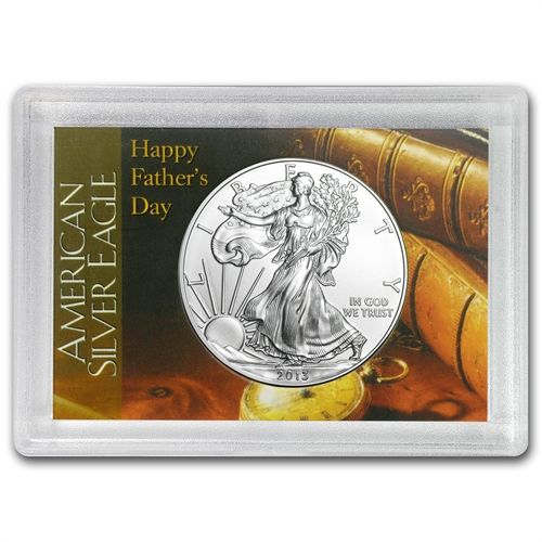 2014 1 oz Silver Eagle in Happy Father's Day Design Har **|**|** Year: 2014 ; Mint Mark: Brilliant Uncirculated ; Denomination: $1 ; MSRP: $100