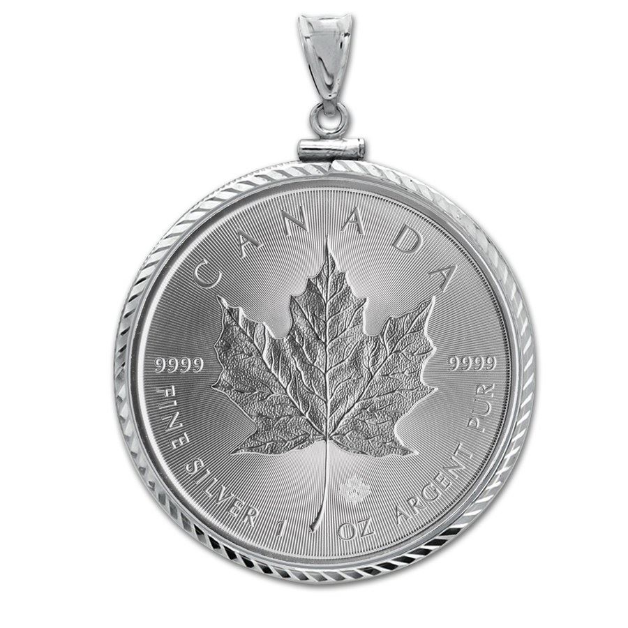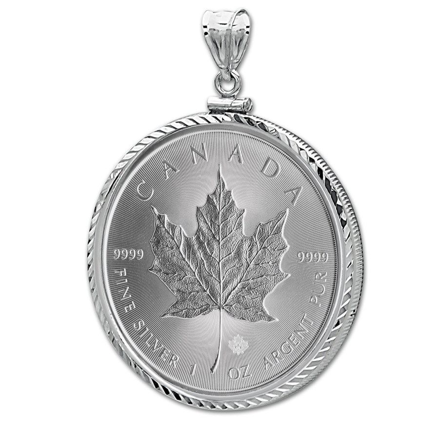 2014 1 oz Silver Maple Leaf Pendant (Diamond-ScrewTop Bezel)