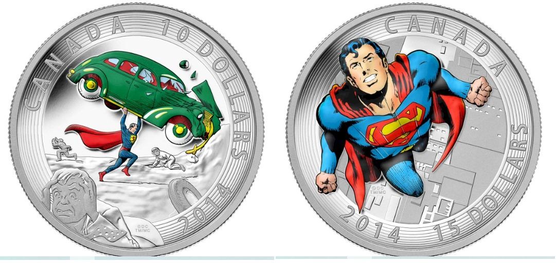 2014 $10 Fine Silver Coin Iconic superman Comic Book Covers Action Comics #1 (1938), 2014 $15 Action Comics #419 (1972), lot of