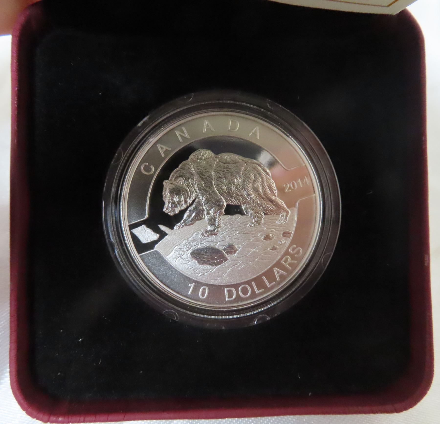 2014 $10 fine silver coin - O-canada- grizzly beaqr/ with case