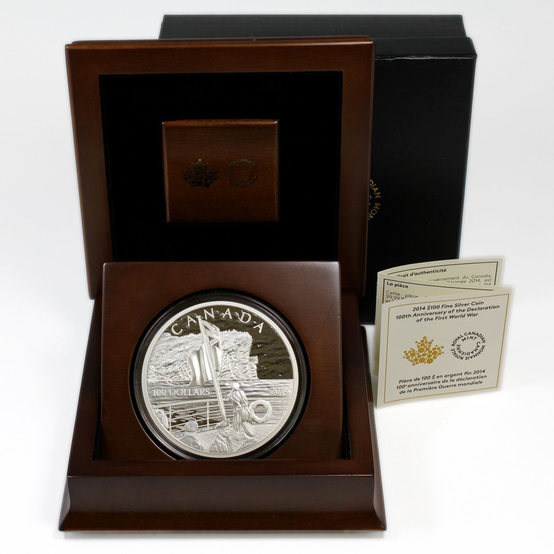 2014 $100 100th Anniversary of the Declaration of WWI 10oz Fine Silver Coin in Deluxe Display Box. Low COA #0043 out of only 1000 minted! (TAX Exempt)