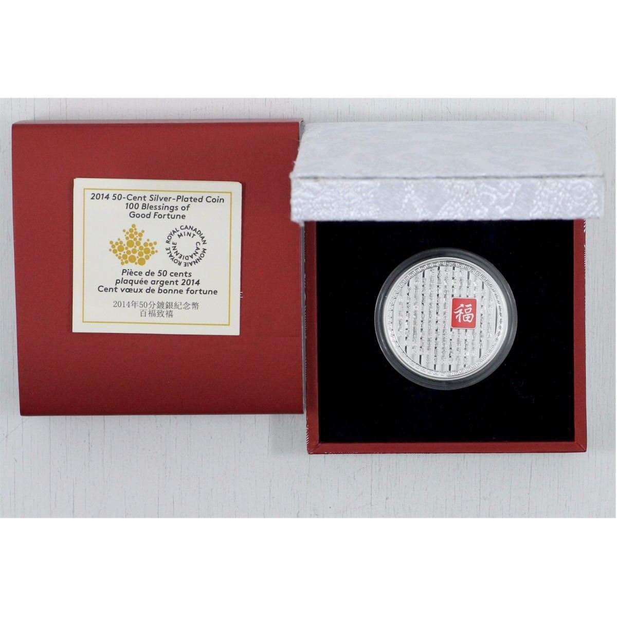 2014 100 Blessings of Good Fortune 50-cent Silver Plated coin issued by the RCM. (Scratched capsule). Buyers Premium will be added on all items as per our terms of sale. We accept Paypal, Credit Card, E-Transfer Payments, Cheque or Money Orders (there is an additional 3% fee for using Paypal or Credit Card). All invoices will be emailed immediately following the auction, please contact us if you would like to pay by credit card or receive a new revised lower total for mailing in payment or sending an e-transfer (3% discount). All Items Are Sold "AS IS", no returns